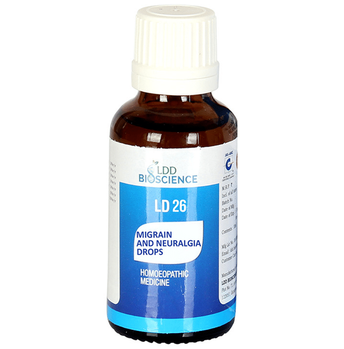 LDD Bioscience LD 26 Migrain & Neuralgia Drop LDD Bioscience LD 26 Migrain & Neuralgia Drop LD 26 Migrain & Neuralgia Drop helps to provide relief from migraine, neuralgia of the head and nervous headaches. The intake of this medication can help in the treatment of migraine and help alleviate its symptoms.