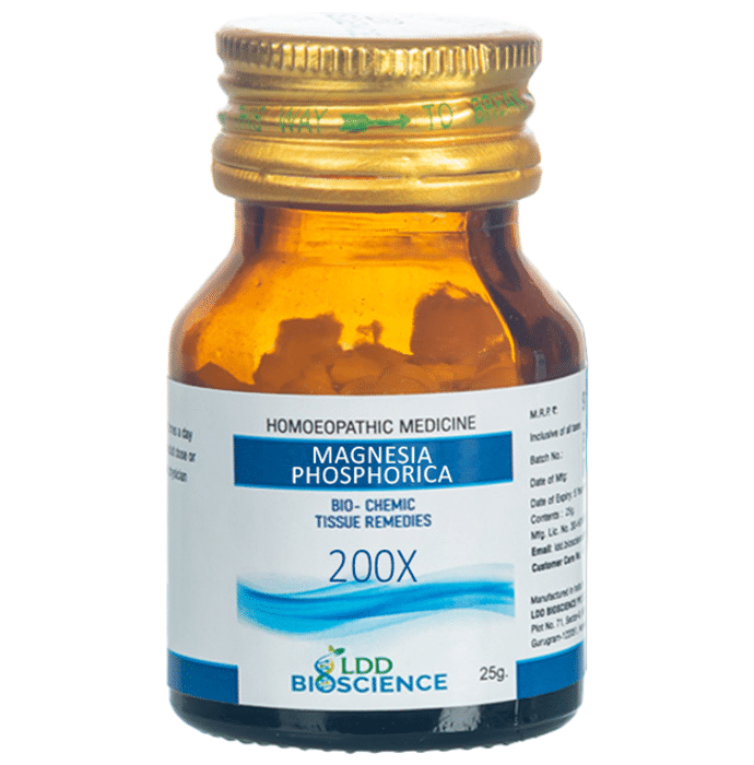 LDD Bioscience Magnesia Phosphorica Biochemic Tablet 200X LDD Bioscience Magnesia Phosphorica Biochemic Tablet 12X aids in the recovery of nerve injury and gives pain and spasm relief. It aids in the relief of general muscle weakness in the arms and hands, as well as mood fluctuations throughout the menstrual cycle. Magnesia Phosphorica is a mineral that aids in energy restoration and the regeneration of the body's neurons and muscles. It aids in the reduction of boredom and the inability to think coherently.