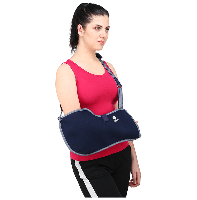 Longlife OCT 010 Arm Sling Support work as an envelope for resting the forearm with elbow bent. The product encompasses non-stretchable strap which aids in reducing the pressure and evenly distributes the weight of the affected arm over the other shoulder. | Uses: It helps to provide support and immobilize the sprained, broken or surgically operated arm in the flexion position while it recovers. | Product Specification and Features: The product is wrinkle proof, smart, and sleek Provides convenient application with thumb cradle It is adjustable and ergonomically designed Aims to holds, support, and immobilize the sprained, broken or surgically operated arm in the flexion position while it recuperates Ideal for tropical countries with hot and humid climatic conditions It has a slide buckle with single touch opening and closing | Directions For Use: Use as per requirement or as directed by the physician. | Safety Information: Read the label carefully before use Store in a cool dry place away from direct sunlight Keep out of reach of the children Avoid physical damage