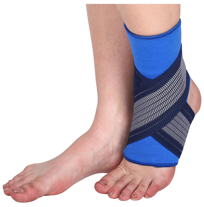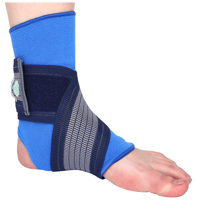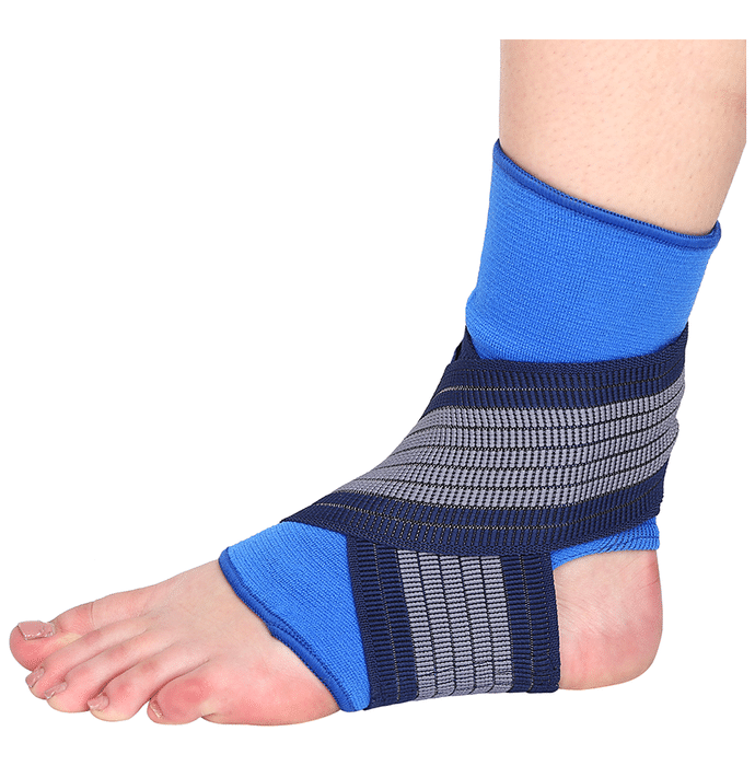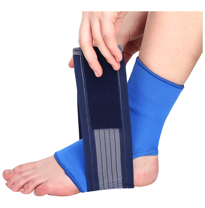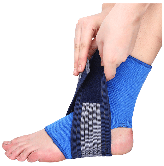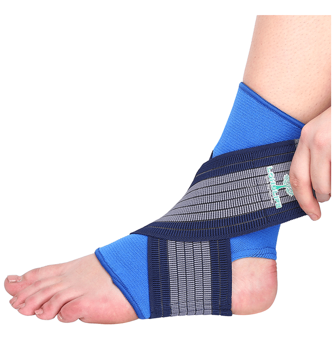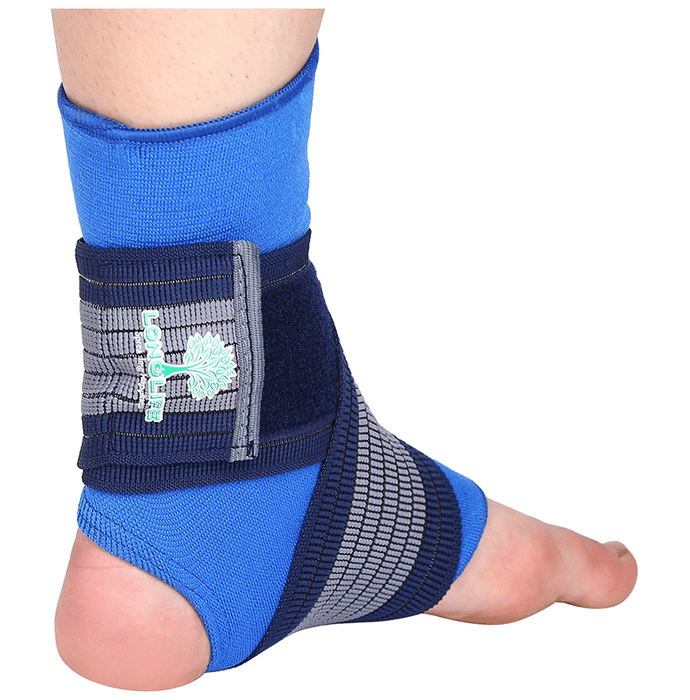 Longlife OCT 014 Ankle Grip Large Blue Longlife OCT 014 Ankle Grip is a support gear worn on injured ankles, used to relieve pain and relax the sprained muscle. With excellent fit and amazing design it has got criss-cross type elastic straps for tension adjustment, making it efficient in relieving the pain of swelling and inflammation.
