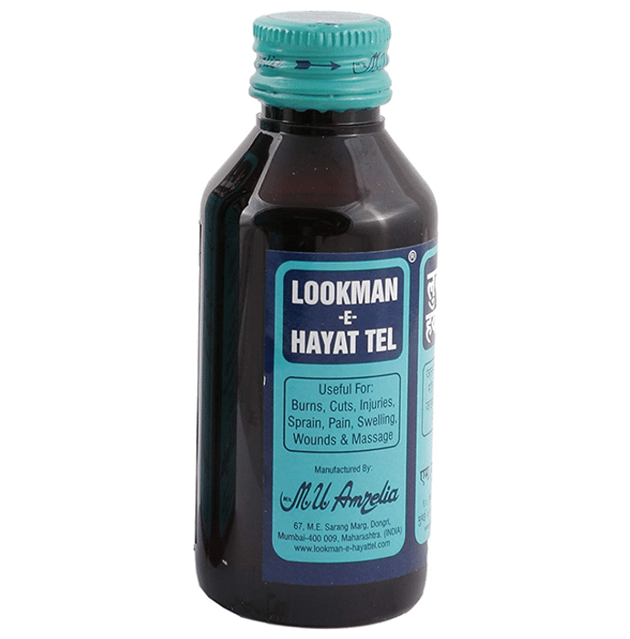 Lookman-E-Hayat Tel Lookman-E-Hayat tel contains Guggal (Commiphora Mukul),Til Oil (Sesamum Indicum). Lookman-E-Hayat tel is a result oriented oil for the treatment of burn, burn marks, cuts, strain, injuries, pain swelling and many other such physical complications. It has also aided in many other infections and disease such as ear ache, gum problems, piles and paralysis. Note: Lookman-E-Hayat Tel, even if dropped in eyes or mouth will cause no harm.