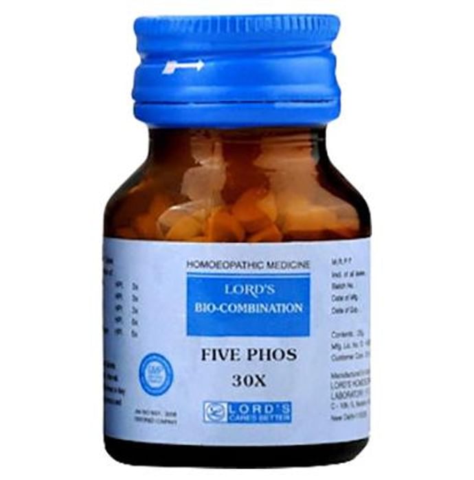 Lord's Five Phos Biocombination Tablet 30X Lord's Five Phos Biocombination Tablet 6X is a general tonic used in day-to-day life by many. It is used for people who are exhausted by mental work, physical work, and generalized weakness. It combines phosphates with calcium, iron, magnesium, potassium, and sodium. It gives strength at nervous, physical, and general body levels giving energy. It works in all age groups.