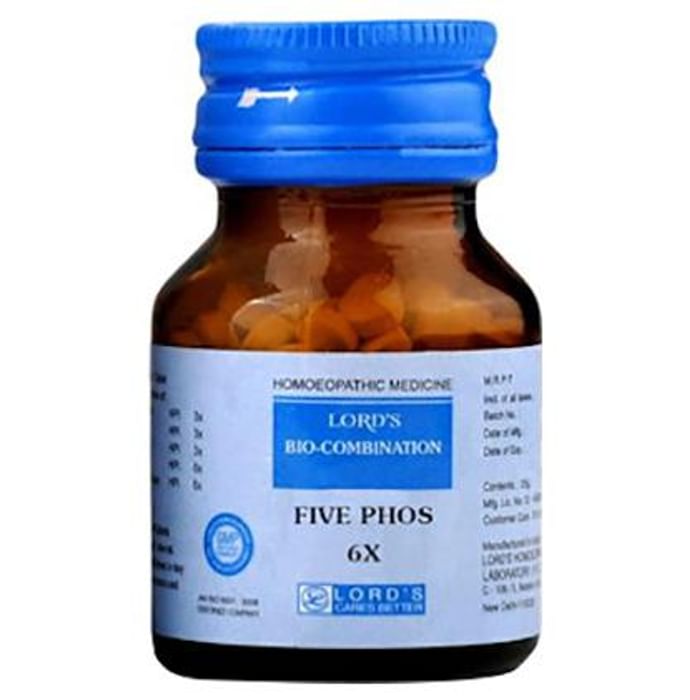 Lord's Five Phos Biocombination Tablet 6X Lord's Five Phos Biocombination Tablet 6X is a general tonic used in day-to-day life by many. It is used for people who are exhausted by mental work, physical work, and generalized weakness. It combines phosphates with calcium, iron, magnesium, potassium, and sodium. It gives strength at nervous, physical, and general body levels giving energy. It works in all age groups.