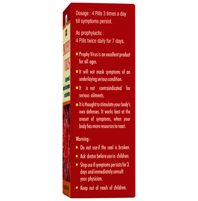 Medilife Prophu Virus is a homoeopathy solution to shield your body from various virus attacks. It keeps up the immune system so that your body is able to fight back. The formulation helps increase stamina, resistance to fatigue, and muscle strength. It helps to keep you energised all through the day. | Key Ingredients: Oscillococcinum 200 Eupatorium perf. 200 Gelesemium semp. 200 Bryonia alba 200 Influenzinuum 200 | Key Benefits: This homoeopathy blend shields your body from various virus attacks It aids in general weakness and loss of appetite It helps in the recovery of your body from mild illnesses It helps in keeping you energised all through the day | Directions For Use: 10 pills 4 times a day Or as directed by your healthcare practitioner | Safety Information: Read the label carefully before use Store in a cool and dry place, away from sunlight Keep out of reach of children