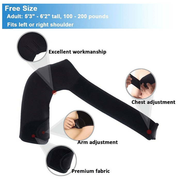 Medtrix Compression Neoprene Shoulder Brace is designed to provide aid in dislocation, separation, sternoclavicular separation, tendinitis, bursitis, impingement syndrome. The product allows a gradual and steady movement of the arm and speeds up the healing process, as it provides therapeutic warmth, retains body heat, and increases blood circulation. | Uses: It is helpful in the condition of dislocation, separation, sternoclavicular separation, tendinitis, bursitis, impingement syndrome. | Product Specification and Features: It embodies adjustable shoulder pad Useful for dislocation, separation & other injuries Facilitates therapeutic warmth to the shoulder & upper arm The product has a thick strap to ensure stability Encompassses strap which helps the belt fit well It is easy to wear and remove Available for both left and right arm | Directions For Use: Use as per requirement or as directed by the physician. | Safety Information: Read the label carefully before use Store in a cool dry place away from direct sunlight Keep out of reach of the children Avoid physical damage