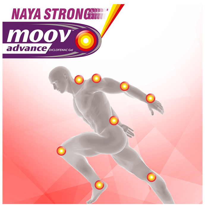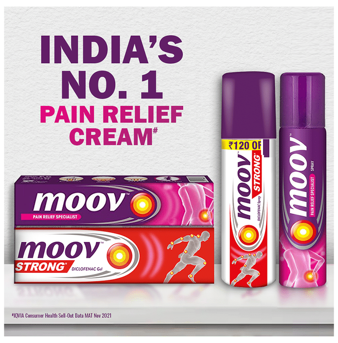 Moov Strong Diclofenac Pain Relief Gel acts fast and gives long lasting relief from pain. It provides relief from joint pain, backache, muscle stiffness, pain, swelling and inflammation due to musculo-skeletal disorders (such as sprains, strains, tendonitis, bursitis, hand, neck, shoulder pain and sciatica) Moov Strong Diclofenac Gel contains diclofenac, which is the No. 1 doctor-recommended active ingredient for acute pain relief. It targets the source of pain, provides warmth and gives quick and long lasting relief from pain. | Key Ingredients: Diclofenac Diethylamine Methyl Salicylate Menthol | Key Benefits: It is absorbed fast into the skin and has a warming sensation Gives quick and has a long lasting relief It provides relief from joint pain, backache, muscle stiffness, pain, swelling and inflammation | Directions For Use: Apply a thin film (2g-4g) to the affected as required, up to 3-4 times a day. Wash hands after application. | Safety Information: Read the label carefully before use Keep out of reach of the children Store in a cool dry place Do not use on children under the age of 16 years Warranty: 730 days