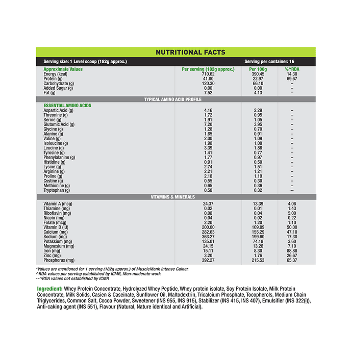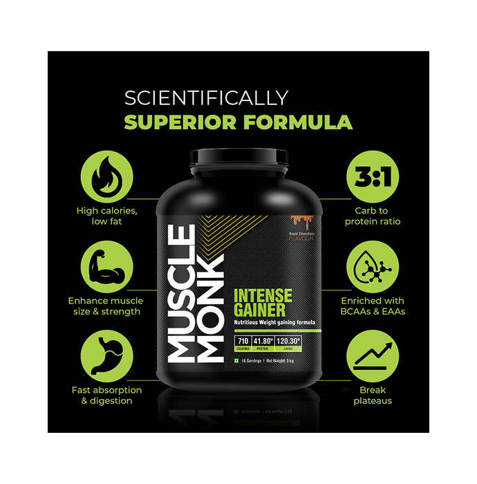Muscle Monk Combo Pack of Intense Gainer Royal Chocolate 3kg & BCAA 2:1:1 Watermelon 300gm Muscle Monk Intense Gainer Royal Chocolate (Fermentis Life Sciences Pvt Ltd)