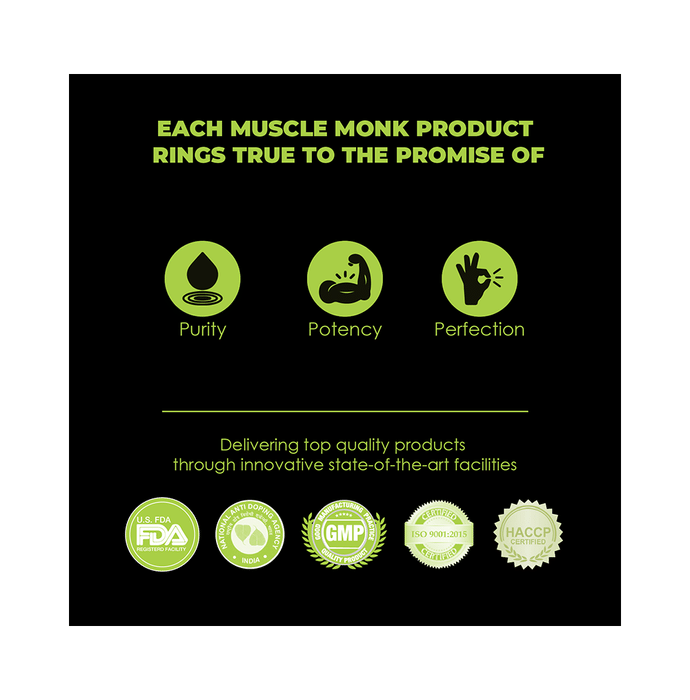 Muscle Monk Intense Gainer Royal Chocolate (Fermentis Life Sciences Pvt Ltd) | Muscle Monk Intense Gainer Royal Chocolate is the ideal mass gainer for beginners that allows the person to enhance endurance and strength. It is a blend of whey proteins, carbs and MCT fat that makes the perfect combination for maximum mass gain and lean muscle growth. It has a unique carb blend that not only offers good weight management but also assists in the speedy recovery of the muscles. It is made with 100% cow milk and its perfect protein-carbohydrate ratio makes this gainer a suitable one for beginners to bulk up. All the calories per serving come from the protein-carb mix. | Key Ingredients: Whey protein concentrate Whey protein isolate Hydrolysed whey peptides Soy protein isolate Milk solids Milk protein isolate Casein and caseinate Sunflower oil Maltodextrin Sweetener | Key Benefits: Made with the perfect protein-carb blend to aid in weight gain It also assists in the speedy recovery of muscles Rich protein blend offers energy and endurance It also supports lean muscle mass Contains no added sugar therefore the calories come from protein-carb mix Healthy fats supply immediate fuel for intense training and workouts | Directions For Use: Use as directed on the label or by the healthcare professional. | Safety Information: Read the label carefully before use Keep out of reach of children Store in a cool and dry place away from direct sunlight Muscle Monk BCAA 2:1:1 Watermelon (Fermentis Life Sciences Pvt Ltd) | Muscle Monk BCAA 2:1:1 Watermelon is a premium intra-workout supplement of branched-chain amino acids. It plays a key role in protein synthesis and delivers L-leucine, L-isoleucine and L-valine for faster muscle recovery after strenuous workouts. | Key Ingredients: BCCAs - L-leucine, L-isoleucine and L-valine Potassium chloride Sodium chloride Sucralose Natural and artificial flavours | Key Benefits: It boosts energy for workouts It prevents muscle breakdown It aids muscle recovery It promotes muscle development while supporting lean muscle mass The watermelon flavour is refreshing and crisp The product is FDA approved | Directions For Use: Use as directed. | Safety Information: Read the label carefully before use Store in a cool and dry place away from direct sunlight Keep out of reach of the children