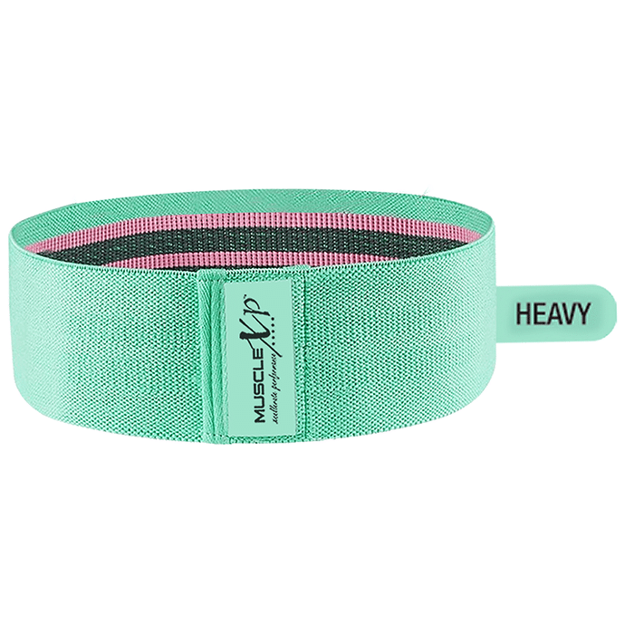MuscleXP Dr Fitness+ Hip Loop Fabric Resistance Band Green Heavy MuscleXP Dr Fitness+ Hip Loop Fabric Resistance Band Green Heavy helps in shaping hips and slimming legs. It is made up of thick fabric, has a nonslip grip, and is suitable for different age groups from kids, to young and elderly people. It is useful for exercises like warmups, stretching, squatting, pilates, cross-fit workouts, hip bend leg pressure, hip abduction, hip bends, and many others.