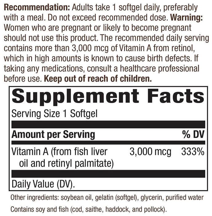 Vitamin A (from fih liver oil and retinyl palmitate) | Soybean oil | Gelatin (Softgel) | Glycerin