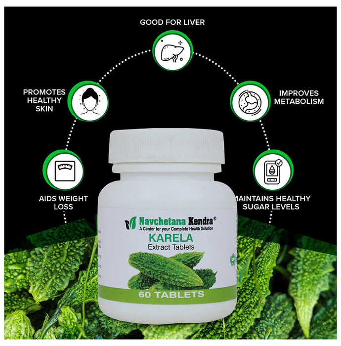 Navchetana Kendra Karela Extract Tablet Navchetana Kendra Karela Extract is an Ayurvedic remedy made from 100% natural ingredients that help to boost the metabolism of the body and aids in healthy weight loss. It can also help promote healthy skin.