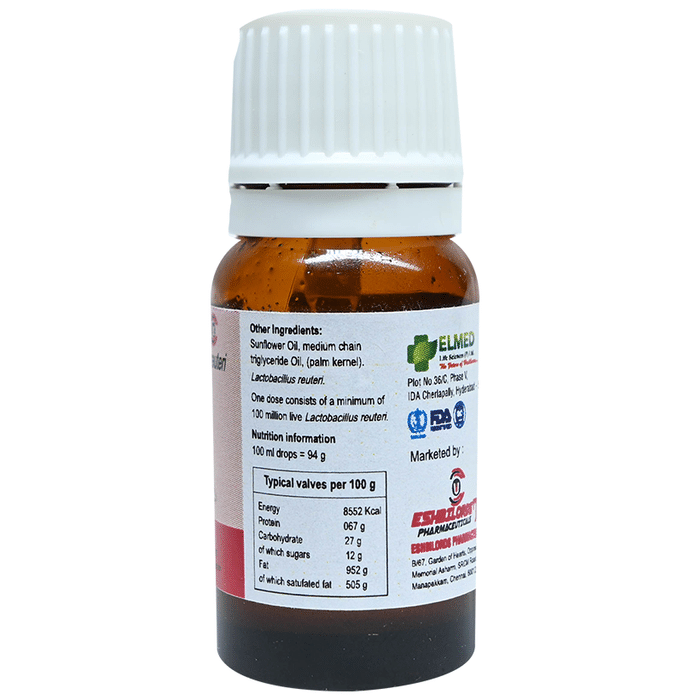Neoteri Baby Oral Drops are formulated with probiotic strains that support children's overall health and well-being. It is enriched with lactobacillus reuteri which produces the enzyme lactase. This enzyme breaks down the sugar lactose into lactic acid and may improve gastrointestinal tract health. | Key Ingredients: Lactobacillus reuteri | Key Benefits: It is a dietary supplement formulated with 1 billion CFUs and probiotic strains that support women's overall health and well-being L.reuteri is a beneficial bacteria that helps to promote a healthy stomach flora It inhibits the growth of harmful bacteria in your intestine and stomach and promotes smooth digestion It may improve gastrointestinal tract health | Directions For Use: Use as directed on the label or as advised by your physician | Safety Information: Read the product label carefully before use Store in a cool and dry place away from direct sunlight Keep out of reach of children Consult a doctor before taking any supplement Do not exceed the recommended dosage Pregnant or nursing mothers, children, and people with medical conditions must consult a physician before taking this supplement