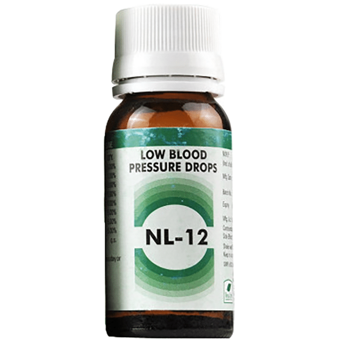 New Life NL 12 Low Blood Pressure Drop aids in the regulation of low blood pressure, reduction of weakness and provides relief in dyspnea. It aids in the strengthening of cardiac muscles and improves heart function. It contains ginseng, which helps to regulate blood sugar levels and alleviate heart problems. It aids in the removal of fatigue, restlessness, dyspnea and asphyxia. It contains the Viscum album, which is used to treat weariness, nervousness, sleeplessness, agitation, panic attacks, and low immunity, as well as cancer, hypertension and arthritis. | Key Ingredients: Gelsemium Cactus Alfalfa Digitalis Ginseng Viscum album | Key Benefits: New Life NL 12 Low Blood Pressure Drop help regulate low blood pressure, reduces weakness and helps in breathlessness It helps strengthen the cardiac muscles and enhances healthy heart function It contains ginseng that lowers blood sugar levels and decreases cardiac ailment issues It helps in eliminating tiredness, restlessness, breathlessness and suffocation | Directions For Use: Take 2-4 drops with water twice a day or as advised by the physician. | Safety Information: Read the label carefully before use Do not exceed the recommended dosage Store in a cool and dry place away from direct sunlight Keep out of reach of children