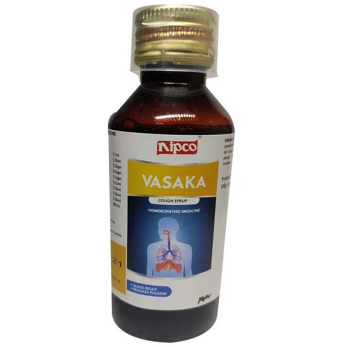 Nipco Vasaka Cough Syrup Nipco Vasaka Cough Syrup is an excellent expectorant that is especially useful for spasmodic dry cough. It's also good for allergic bronchitis and other respiratory issues. Cough reflexes are suppressed, and chest congestion is relieved. It contains Ipecac, an expectorant that helps to thin mucous and make coughing easier. This formulation also contains antim tart, which aids in the treatment of respiratory problems. It is excellent for people with weak coughs and chest congestion, and it is especially beneficial for infants and the elderly.