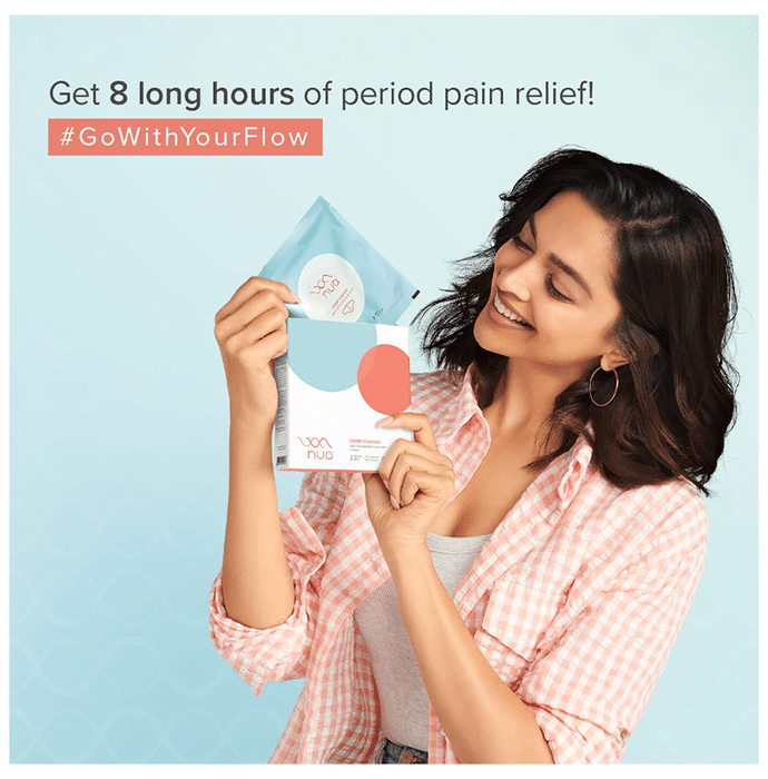 Nua Cramp Comfort Heat Patch is a self-heating patch inspired by the function of a hot water bag for cramps during periods. This nua product will not only offer relief to the period pain but also provide a portable solution to carry outdoors. The patch is made with 100% natural and effective ingredients and does not contain any harmful chemicals. The patch should be applied to the underwear and not directly on the skin. Heat is a natural and effective way to reduce pain. | Key Ingredients: Iron Vermiclulite (Clay) Activated carbon Natural salt | Key Benefits: The gel has a quick heating formula that is activated in air This heating pad has an insulator to lock heat for a longer period It is crafted with high-quality fabric that prevents damage It is leak-proof which makes it safe to use The patch should be applied to the underwear and not directly on the skin It offers relief to period pain and also provides a portable solution to carry it outdoors | Directions For Use: Use as directed on the label. | Safety Information: Read the label carefully before use Store in a cool and dry place away from direct sunlight Keep out of reach of children