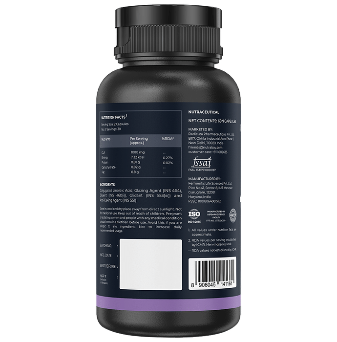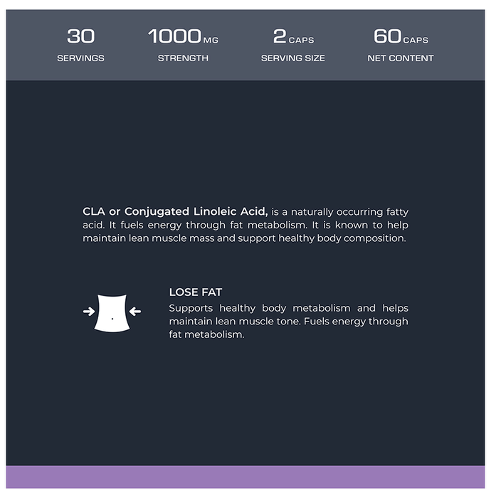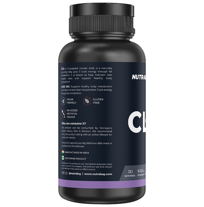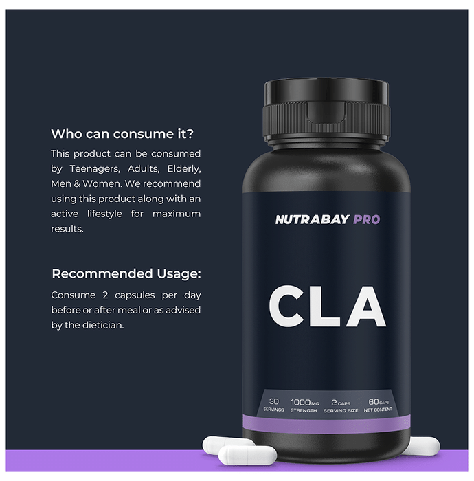 Nutrabay Pro CLA Capsule Nutrabay Pro CLA Capsule contains Conjugated Linoleic Acid, a naturally occurring fatty acid. It fuels energy through fat metabolism. It is known to help maintain lean muscle mass and support healthy body composition.