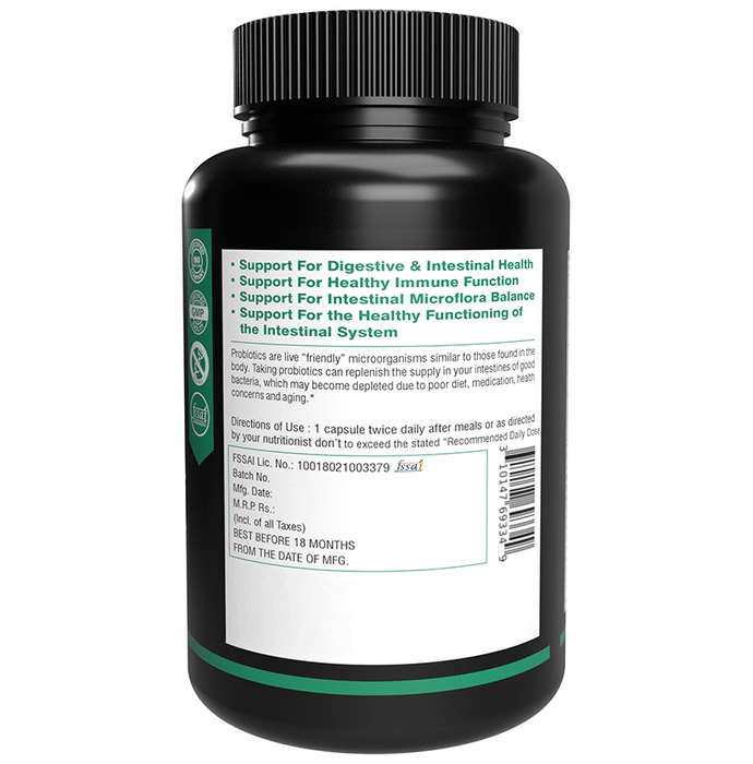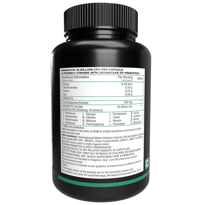 NutritJet Prebiotics with Probiotics Capsule provides the goodness of prebiotics and probiotics. Probiotics help absorb protein in the diet as well as other vitamins and nutrients to promote healthy digestion. They also keep you healthy by promoting a healthy immune system. Besides, the formulation promotes healthy intestinal flora. | Key Ingredients: Frutoligosaccharides L. Plantarum L. Acidophillus L. Rhamnosus L. Salivarus L. Fermentum L. Casei B. Longum | Key Benefits: Probiotics include good bacteria that prevent diarrhoea Supports the immune function and controls inflammation Promotes healthy intestinal flora | Directions For Use: Take one tablet daily or as directed by the physician. | Safety Instructions: Read the label carefully before use Store in a cool dry place away from direct sunlight Keep out of reach of the children