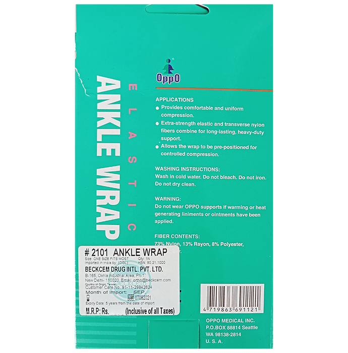 Oppo Ankle Wrap Elastic Oppo Ankle Wrap Elastic is made to provide support to the ankle and may prove specifically useful during sprains. It improves circulation to give firmness and flexibility while relieving pain. Further, it also helps to keep the skin dry and comfortable, with absorbent lining that provides both comfort and durability.