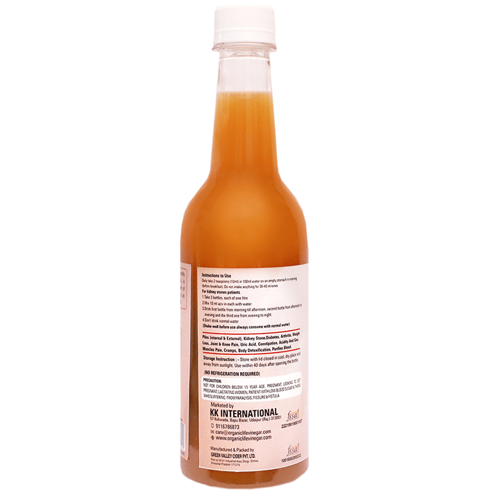 Organic Life Apple Cider Vinegar with Mother Vinegar is made by crushing fresh, organically grown apples after allowing them to mature in wooden barrels. When the vinegar matures, it contains a dark, cloudy, web-like bacterial foam called the Mother. This is a sign that the friendly enzymes and bacteria that promote healing have not been removed. ACV is acidic in nature, but when consumed it has an alkaline effect on our body. | Key Ingredients: Apple cider vinegar | Key Benefits: It also helps in fat reduction, improves immunity, removes toxins from the body, and offers relief in acidity and gastric problems It is enriched with a compound that mimics insulin and absorbs glucose It acts as a natural antibiotic and provides numerous benefits to the skin, improving digestion and immunity without any side effects It helps in slowing the breakdown of starches into sugar and also helps to make your body alkaline It effectively helps in improving digestion and reduces the body’s cholesterol level | Directions For Use: Read the label carefully before use. | Safety Information: Read the label carefully before use Store in a cool and dry place away from direct sunlight Keep out of reach of children