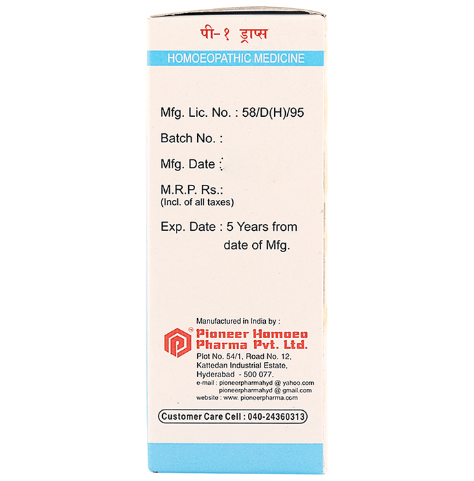 Pioneer Pharma P1 Acidity Drop Pioneer Pharma P1 Acidity Drop is a homoeopathic remedy to offer ease from acute and chronic gastritis, sensation in the throat related to digestion problems, stomach ache and gas problems.