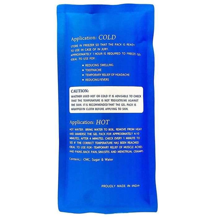 Presens Hot and Cold Pack Large can be used for cold or hot therapy to relieve pain. Cold therapy helps reduce pain, sprain, strained muscles, swelling, toothache, and fevers and provides temporary relief from headaches. Hot treatment is useful in elevating blood flow to the area to relieve pain from muscle aches, back pain, sinusitis, and menstrual cramps. | Uses: The hot and cold pack helps provide relief from pain or swelling. | Product Specifications and Features: | All-around use: Ideal for clinical, home, office, school, and sports use | First aid essential: Provides efficient hot and cold therapy | For all ages: For adult’s and children’s relief | Post-surgery use: Can be used after wisdom tooth operation, cosmetic procedure, etc. | Fast relief: Store it in a freeze for quick use as needed | Portable: Small and lightweight design make it easy to be carried around | Contents: CMC. Sugar, Water | Directions for Use: | For cold use: Store it in the freezer for approximately to freeze the gel | For hot use: Bring the water to a boil Remove from heat and immerse the gel pack for approximately 4-10 minutes After 4 minutes, check every 1 minute to see if the desired temperature has been reached | Safety Information: It is advisable to check that the temperature is not too extreme against the skin It is recommended that the gel pack is wrapped in cloth before applying it to the skin Read the label carefully before use Store in a cool and dry place Keep out of reach of children