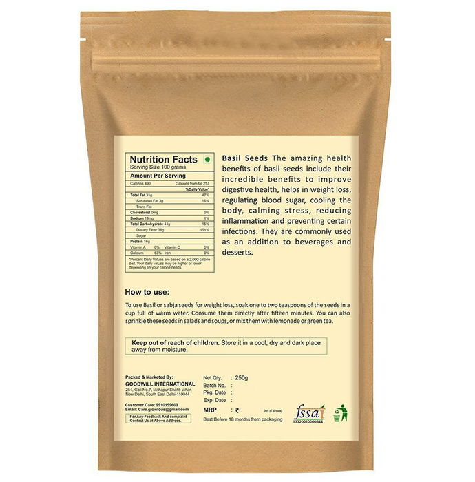 Pronatural Basil Seeds are known as a miracle food because they aid in weight loss, metabolism, skin wellbeing, hair strength, blood regulation, body cooling, stress relief, building healthy bones, lowering blood pressure, improving vision, lowering cholesterol and preventing certain infections. Basil seeds are rich in fibre, which helps to fill up the stool and keep you healthy between meals, preventing overeating and snacking. Basil seeds can be used to make sherbet and milkshakes, as well as a salad topping, but they're also delicious in soups, stews, yoghurt and pasta dishes as well. | Key Ingredients: Basil Seeds | Key Benefits: Basil seeds are known as a miracle food because they aid in weight loss and metabolism Promotes the wellbeing of the skin and hair strength Helps in regulating the blood and relieving the stress Supports in building healthy bones, lowering blood pressure, improving vision, lowering cholesterol and preventing certain infections | Directions For Use: Use as per your requirement. | Safety Information: Read the label carefully before use Keep out of reach of the children Store in a cool dry place Seal lock pouch after every use