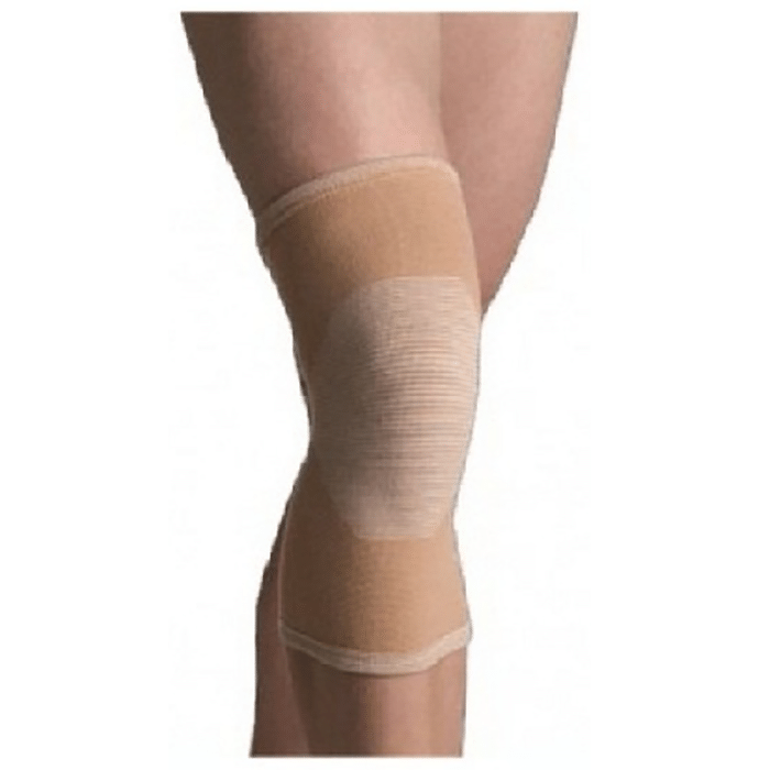 Renewa Elastic Knee Support is designed to support and stabilize an injured knee. The product helps to limit movement while the knee heals after injury or surgery. | Uses: It facilitates support, protection, and stability to the injured knee. | Product Specification and Features: It is a 4-way strecth knee support The product easily slips on to facilitate circular compression It provides firm support and warmth to the weak or inflammed joints Material: Nylon, Latex, Spandex, cotton Useful in the case of Arthritic knee pain and Patellar dislocation Size in Number: 14.8 - 17.2 inch | Directions For Use: Use as per requirement or as directed by the physician. | Safety Information: Read the label carefully before use Store in a cool dry place away from direct sunlight Keep out of reach of the children Avoid physical damage