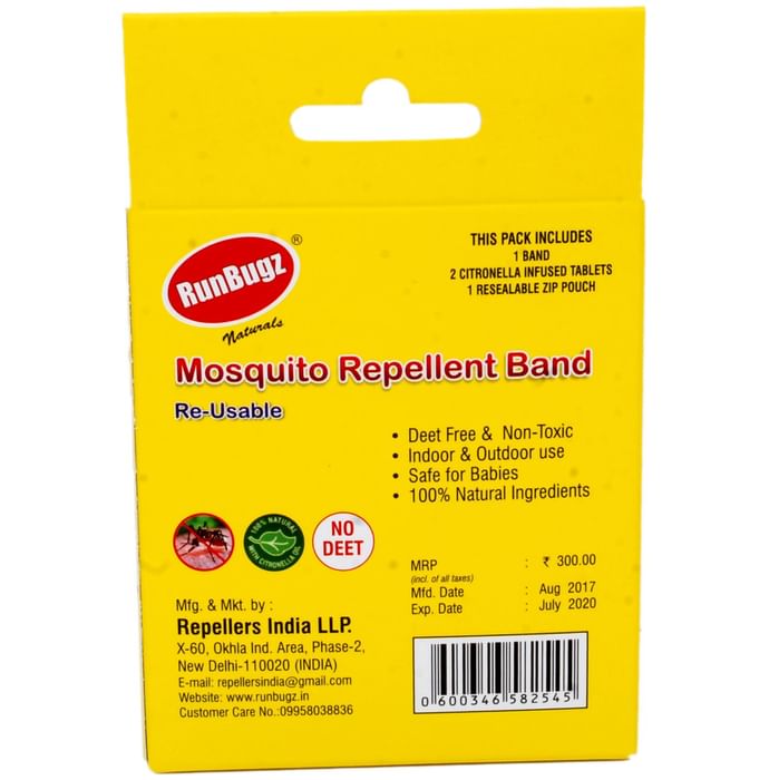 Runbugz Fish Mosquito Repellent Band with 2 Refillable Tabs is a non-toxic and natural repellent band that protects your child from mosquitos and the dangerous diseases they carry. | Uses: It is used as a band that keeps the mosquitos away from your children preventing harmful diseases such as dengue and malaria from catching onto them | Product Specifications and Features: Assists in combatting Malaria, Dengue and Chikungunya Designed for both Indoor as well as outdoor use Non-toxic and Deet free Natural oil with a beautiful scent For children of the age of 2 and above | Directions for use: After opening the pack, take the band out of it Place the band into one of your hands like a bracelet or bangle and be safe from the harmful mosquitos | Safety Information: Read the manual carefully before use Meant for external use only Not recommended for kids under the age of 2