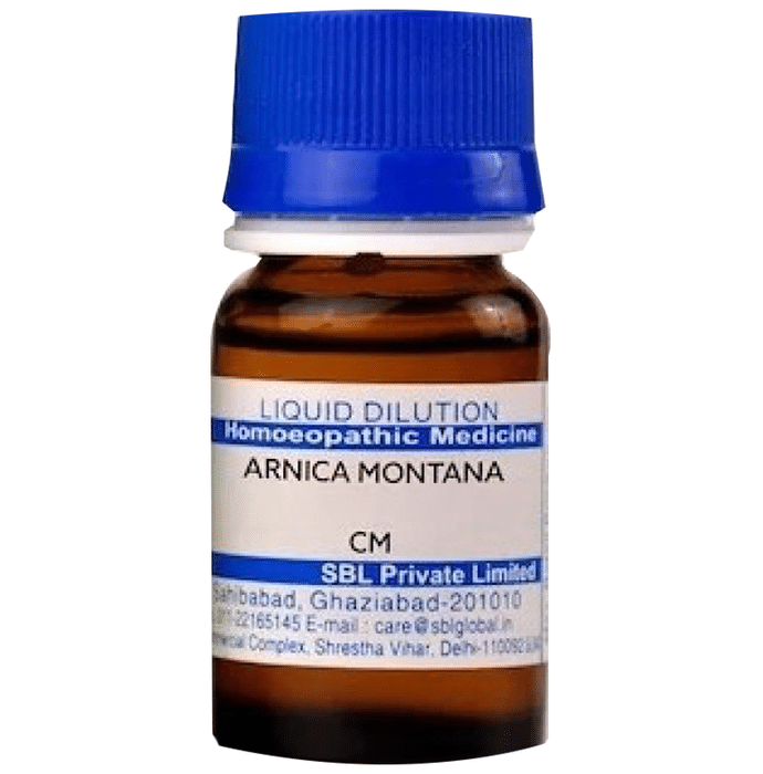 SBL Arnica Montana Dilution CM CH SBL Arnica Montana Dilution is extremely useful in the treatment of post injury bruises that causes pain in the joints and muscular cramps. It is also an effective remedy for the treatment of mouth ulcers and bleeding gums. It also helps in reducing soreness and stops bleeding. Natural herbs help in reducing pain associated with bruises and falls. Buzzing sensation and pain in the cartilages of ears can also be relieved by its use.