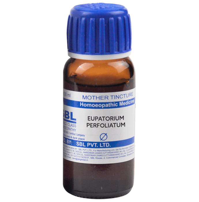 SBL Eupatorium Perfoliatum Mother Tincture Q SBL Eupatorium Perfoliatum Mother Tincture is a homeopathic medicine which helps in relieving pain in the limbs and muscles. It is an effective medicine for treating fevers of Malaria and Dengue. It is also helpful in reducing soreness and hoarseness in chest.