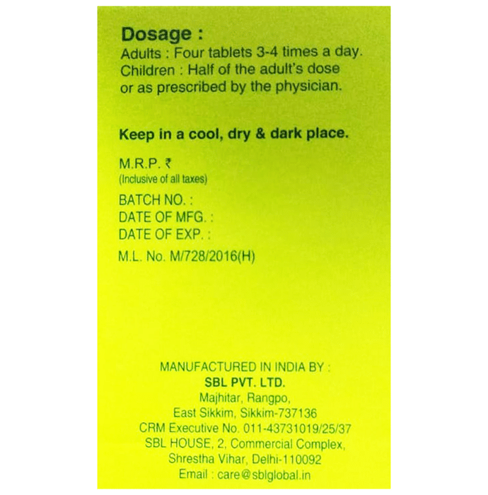 SBL Kali Phosphorica Biochemic Tablet is an excellent remedy for individuals who are constantly exhausted mentally and physically. One of the greatest nerve remedies for those with lack of nerve power and people suffering from numbness in limbs, or in hands and fingertips and legs are well treated with kali phosphorica. Mental inability to work or irritation due to overwork, that even slightest work seems a heavy task are symptoms that are treated with the tablet. | Key Ingredient: Kali Phosphorica | Key Benefits: Reduces paralytic lameness in back and extremities Helps to restore the weakness and dullness in children due to improper nutrition Relieves constipation with difficulty in passage of stools Night terrors in children who suffer from enuresis (bedwetting) and bleeding from the urethra Relieves muscle weakness, anxiety, depression and chronic fatigue Increases stamina both physically and mentally Helps to increase the blood flow during menses Helps in recovering severe skin conditions and irritations | Directions For Use Put tablets into mouth and allow them to dissolve under the tongue. For adults and adolescents (12 years and older) 2 to 4 tablets, four times daily, or as recommended by your healthcare practitioner. Children (under 12 years) 2 tablets twice a day. In acute cases a dose every hour or two and in severe, a dose every ten to fifteen minutes. Always keep a gap of 15 minutes before or after meals when you take medicine. | Safety Information: Avoid eating tobacco or drinking alcohol during the course Keep out of the reach of children Use under medical supervision Read the label carefully before use Avoid any strong smell in the mouth such as coffee, onion, hing, mint, camphor, garlic etc while taking the medicine Keep at least half an hour gap between food/drink/ any other medicines and allopathic medicine