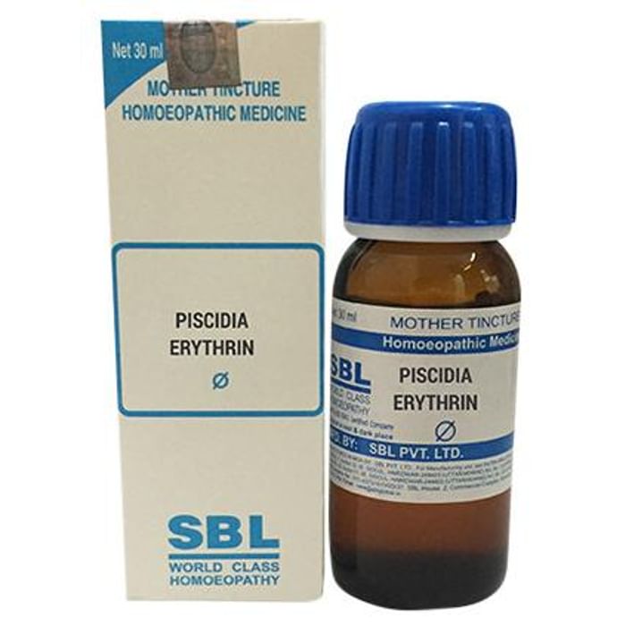 SBL Piscidia Erythrina Mother Tincture Q is a homeopathic medicine used for people suffering from insomnia, pain, anxiety, nervous tension, acne and uterine disorders. | Key Ingredient: A type of tree commonly known as fishpoison tree or Jamaican dogwood. | Key Benefits: Controls the exaggerated or uncontrollable emotion and excitement Reduces the pain radiating along the sciatic nerve, which runs down one or both legs from the lower back Treats the pain in the tooth and controls the severe migraines It acts as an anti-inflammatory | Directions For Use: As prescribed by physician. Can be taken along with allopathic medicines. | Safety Information: Read the label carefully before use Avoid eating tobacco or drinking alcohol during the course Keep out of the reach of children Use under medical supervision Avoid any strong smell in the mouth such as coffee, onion, hing, mint, camphor, garlic etc while taking the medicine Keep at least half an hour gap between food/drink/ any other medicines and allopathic medicine