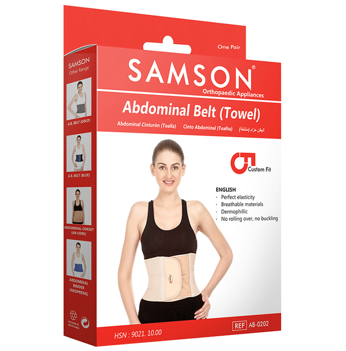 Samson AB0202 Abdominal Belt (Towel) XXL Beige Samson AB-0202 Abdominal Belt (Towel) is a premium quality waist and abdomen supports specially designed for physically challenged and handicapped people to protect and blind surgical incision of the abdomen and the chest. It is also indicated for post delivery mothers, to tone mellowed abdominal muscles and in umbilical and ventral hernia in post-operative cases of thorax and abdomen.