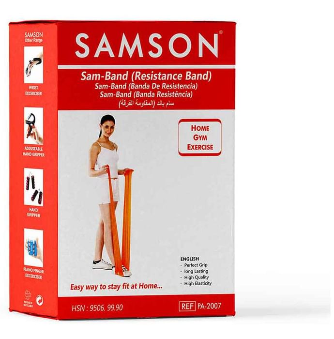 Samson PA-2007 Sam Band (Resistance) are an excellent product for exercise during workout, rehabilitation and conditioning. The Exercise Bands provides a smooth progressive resistance throughout the full range of motion. The colours usually represent a different level of resistance, i.e. the thickness of the material will require more strength to stretch, therefore strengthening the muscles used more. | Uses: The resistance bands are used to build up the strength, and provides a smooth stretch which will not lead any jerk or injury. | Product Specification and Features: Helps to provide strength to the muscles The bands can easily be tied and untied in knots It helps to create loops for looping around your feet, arms, chair legs or door handles for specific exercises Resistance bands are lightweight and easily portable | Directions For Use Can be used as per your requirement or as directed. | Safety Information: Read the label carefully before use Keep out of reach of the children Store in a cool dry place away from use Avoid direct sun or hot temperature Avoid any physical damage