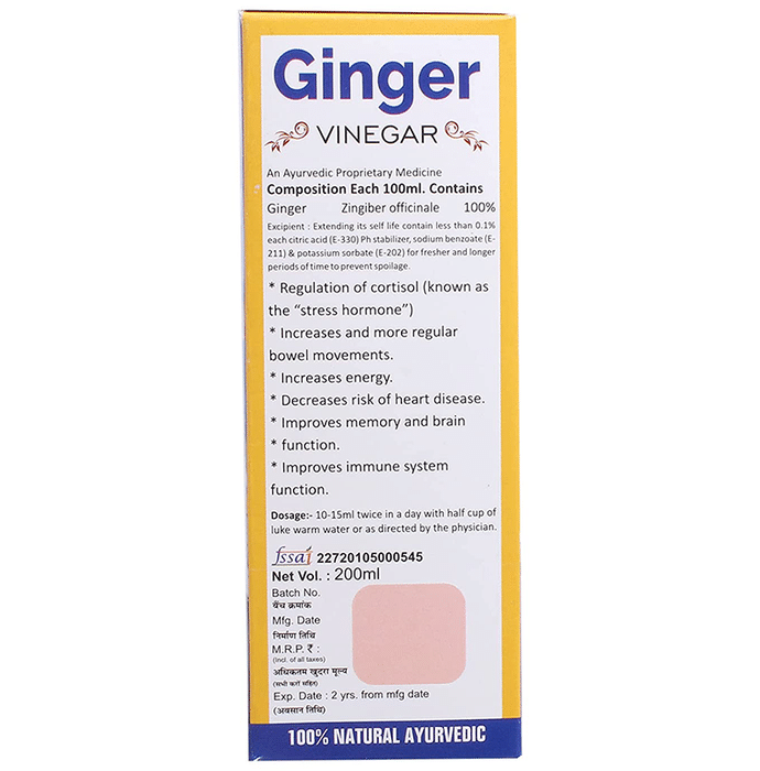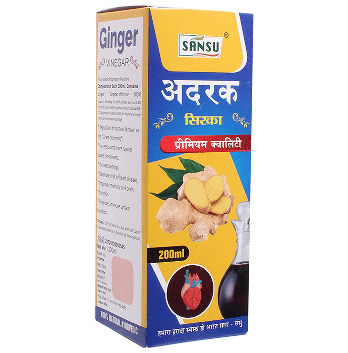 Sansu Ginger Vinegar is an ayurvedic product that may improve the immune system. It may also boost energy levels and improve memory and brain function. It may keep your digestive system and heart-healthy. | Key ingredients: Ginger | Key Benefits: It can improve your bowel and brain function It may also boost energy level and immunity It can keep your digestive system and heart healthy | Directions For Use: Take 10ml twice a day with half a cup of water or as directed by the nutritionist. | Safety Information: Read the label before use Store in a cool and dry place Keep out of reach of the children