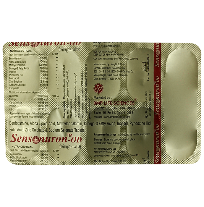 Sensonuron-OD Tablet Sensonuron-OD Tablet it contains Omega 3 fatty acids that can improve overall health. It is usually prescribed as a nutritional supplement. It is beneficial for nutritional deficiency. Omega-3-fatty acids combinations contain essential building blocks of the body that helps to maintain good health.