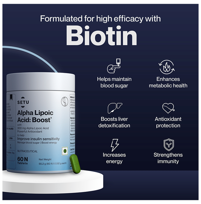Setu Alpha Lipoic Acid 300mg Tablet Setu Alpha Lipoic Acid 300mg Tablet is a powerful antioxidant that can protect oxidative stress. It may be helpful for regulating blood sugar levels. It can also help detoxify heavy metals in the body.
