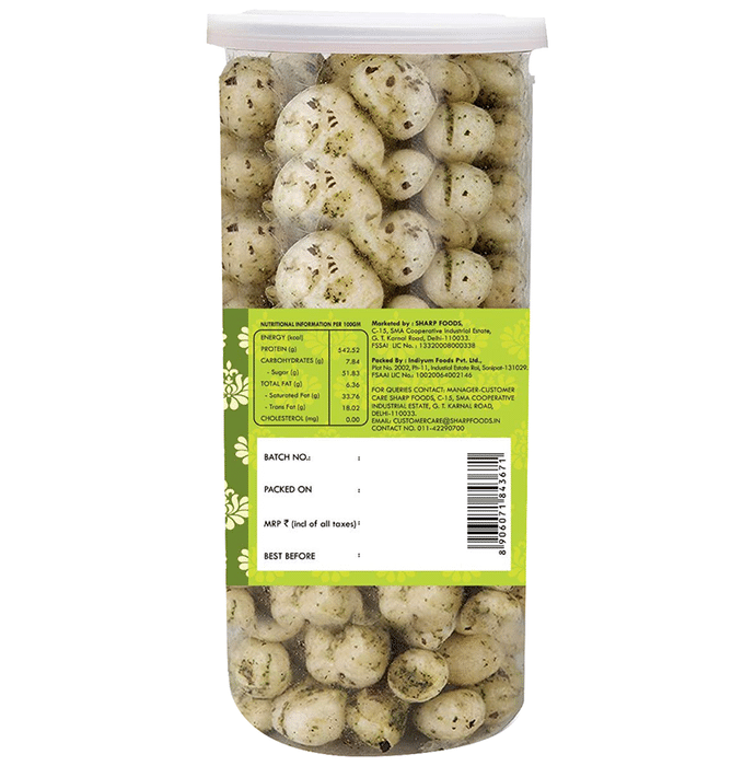 Sharp Foods Makhana (90gm Each) contains flavoured makhana, also known as Fox Nuts. These dried and oven-baked nuts can be eaten raw; used for sauces or purees; or added to smoothies, salads or soups. Besides the delectable subtle taste, the nuts are high in antioxidants and anti-aging properties. The product comes in various delectable flavours. | Key Ingredients: Makhana | Key Benefits: It helps strengthen bones It is good for digestion Makhanas are a healthy snacking option The pack contains flavoured makhanas | Directions For Use: Use as directed. | Safety Information: Read the label carefully before use Store in a cool and dry place away from direct sunlight Keep out of reach of the children