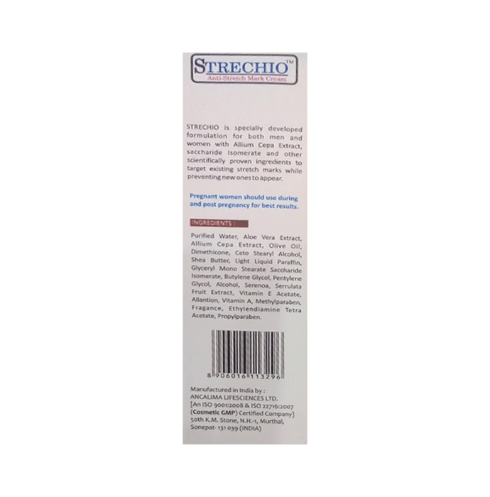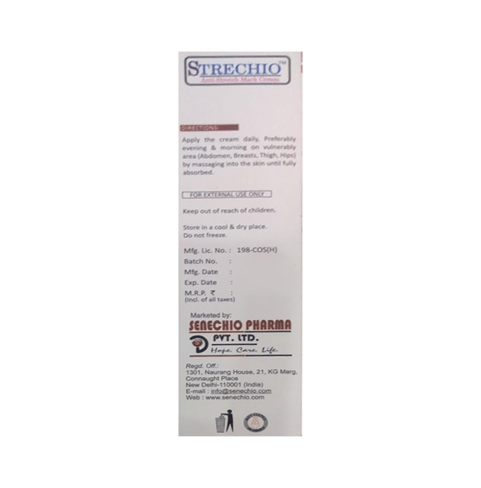 Strechio Cream Strechio Cream is a personal body care cream. It is used for treatment of many skin and hair related problems.