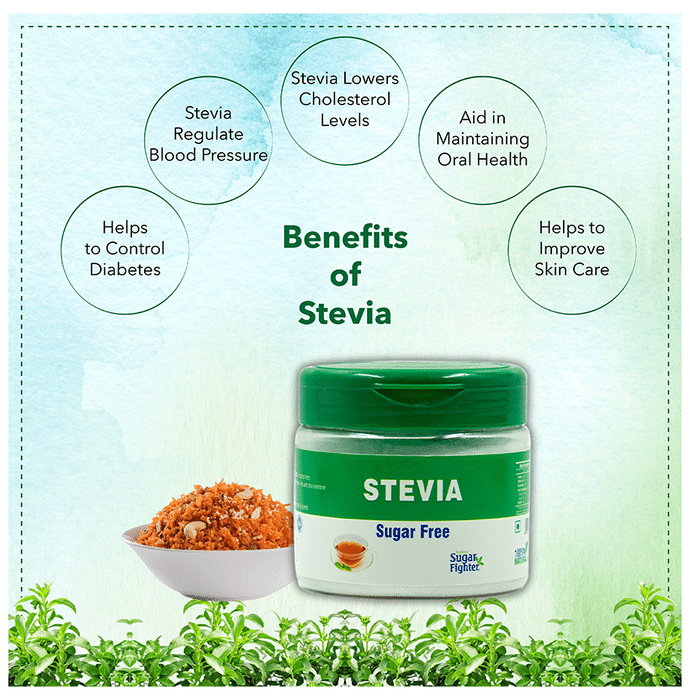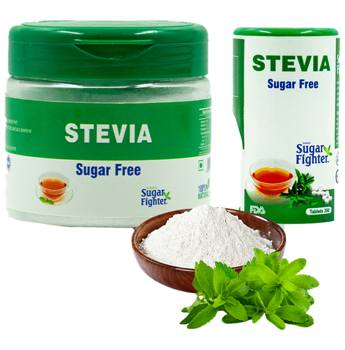 Sugar Fighter Combo Pack of Stevia Sugar Free Powder 100gm and Stevia Sugar Free 200 Tablet is a preferable option over sugar. Stevia is renowned for avoiding gum diseases and slowing the development of oral bacteria. Since stevia helps to stimulate insulin production and is high in glycosides, it is well recognised that it can reverse diabetes. It is beneficial for those trying to live healthier lives. It serves as a natural sweetener and offers an alternative to artificial and sugar-based sweeteners that is sugar-free, gluten-free, and carbohydrate-free. | Key Ingredients: Stevia | Key Benefits: These stevia tablets may help to promote healthy teeth and gum These stevia tablets maintain sugar levels without increasing calories It is the healthiest, calorie-free, nutritious, safe and natural substitute for sugar In addition to keeping your blood sugar in check It also contains several nutrients that boost overall health It helps you to cut down on excess calories of sugar to keep you fit It is beneficial in the condition of hypertension and overweight/obesity | Directions For Use: Use as directed on the label or as advised by your healthcare provider. | Safety Information: Read the label carefully before use Store in a cool and dry place away from direct sunlight Keep out of reach of children