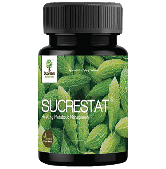 Supreem Super Food Sucrestat Capsule (60 Each) Supreem Super Food Sucrestat Capsule Sucrestat is a bitter melon extract in the form of capsules that regulates blood sugar levels in people suffering from diabetes. It increases glucose uptake and glycogen synthesis in the liver, muscle and adipose tissues, helping maintain normal cholesterol levels and relieve indigestion to improve bowel movement. Bitter melon contains a hypoglycemic compound that is very effective in keeping blood sugar levels down. The extraction of bitter melon is based on Ayurvedic principles where synergy plays an important role in regulating blood glucose without affecting normal metabolism.