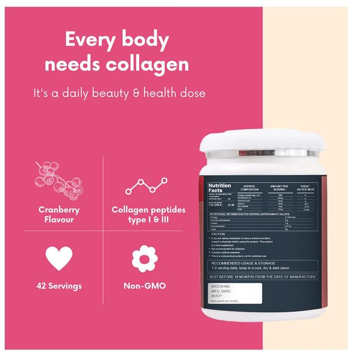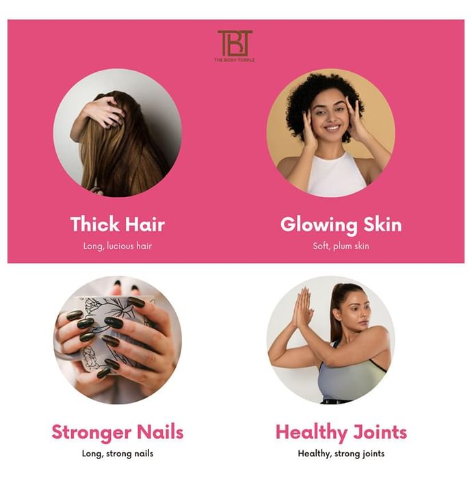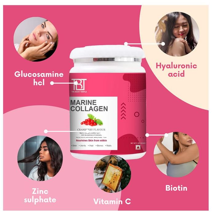 The Body Temple Marine Collagen Powder It is a dietary supplement enriched with marine collagen, hyaluronic acid, biotin, vitamin C and zinc that support your overall health. Collagen helps improve your skin's elasticity and reduces the appearance of ageing like wrinkles, fine lines, and forehead lines. It supports healthy skin, nails and hair and promotes joint health. The Body Temple Marine Collagen powder is available in four different flavours. | Key Ingredients: Marine collagen powder Hyaluronic acid Bitoin Vitamin C Zinc sulphate | Key Benefits: It is a dietary supplement that can support your overall health and well-being Vitamin C helps increase collagen production and improve the skin’s elasticity Collagen reduces skin dryness and helps in retaining skin’s natural moisture and hydration It can help diminish visible signs of ageing like wrinkles and fine lines It helps to repair damaged skin, improve skin barrier and enhance the skin texture It supports healthy skin, nails and hair and promotes joint health Hyaluronic acid helps alleviate dry skin, reduce the appearance of fine lines and wrinkles and speed up wound healing | Directions For Use: Use as recommended on the product label or as directed by your physician | Safety Information: Read the product label carefully before use Store in a cool and dry place away from direct sunlight Keep out of reach of children Consult a doctor before taking any supplement Do not exceed the recommended dosage Pregnant or nursing mothers, children, and people with medical conditions must consult a physician before taking this supplement Do not use if the product appears to be tampered with or the seal is broken