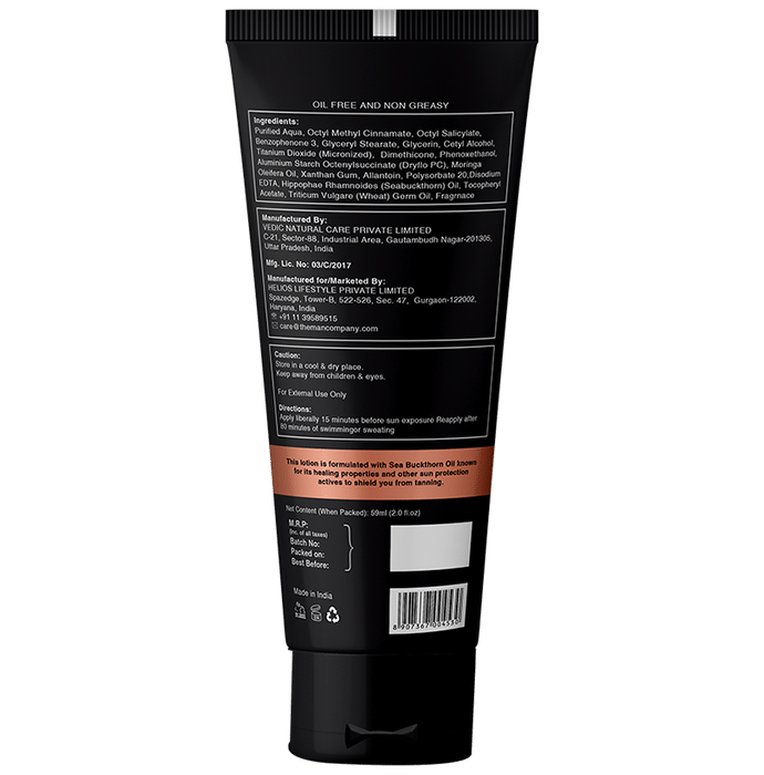 The Man Company Premium Grooming Essentials for Men (Sunscreen Lotion 59ml & Vitamin C Face Serum 30ml) The Man Company Premium Grooming Essentials for Men (Sunscreen Lotion 59ml & Vitamin C Face Serum 30ml) includes Vitamin C Face Serum which is made with high potency 40% Vitamin C. Coupled with Moringa Essential oil, Gotu Kola Extract, Licorice Extract, Aloe Vera Extract and Citric Acid, this serum is a powerhouse of antioxidants that boost collagen production, improve skin texture and delay signs of ageing. Hyperpigmentation, damages done by sun and pollution as well as damage caused by acne can be improved with The Man Company Vitamin C serum. This potent liquid adds radiance to the skin and evens skin tone. It heals, moisturises, brightens all at the same time. It is safe for all skin types. On the other hand, Sunscreen Lotion is formulated with Sea Buckthorn Oil known for its healing properties and other sun protection actives like Allantoin and Wheat Germ Oil to shield you from tanning. Suitable for all skin types of men and complete with antioxidants, this multi-protector from the house of Defence Theory also helps fight dullness and sun-damaged skin. The texture of this sunscreen for men is easy and requires not more than a minute to blend.
