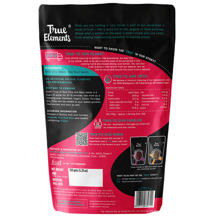 True Elements Combo Pack of Raw Chia Basil Seeds 150gm and Raw Flax Seeds 250gm True Elements Combo Pack of Raw Chia Basil Seeds 150gm and Raw Flax Seeds 250gm is a pack of a healthy snack. It is a combination of seeds with a delicious taste. It help in the overall functioning of the body due to the presence of vitamins, minerals, essential amino acids, antioxidants, fatty acids, etc.