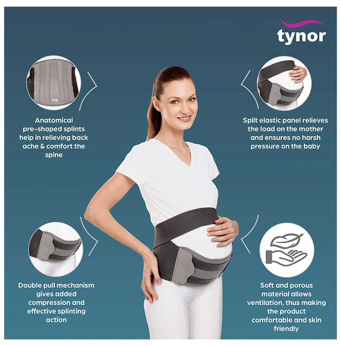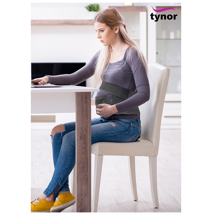 Tynor A 20 Pregnancy Back Support Belt Small Grey Tynor A 20 Pregnancy Back Support Belt is useful for supporting the lower back and abdomen during pregnancy. It also provides comfort to the pregnant mother while she is working or travelling.