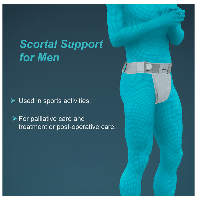 Tynor I-59 Scrotal Support is designed to hold, provide compression and lift the scrotal sac and helps to relieve the pain, discomfort, and strain of inflamed or sagging testicles. | Uses: To provide support to the scrotum after operation or injury | Product Specification and Features: Controlled compression to scrotum: Has anatomical shape which ensures effective support and lift to the scrotum which has stretchable pouch provides strong compression, required comfort and sufficient space for scrotum Separate penile compartment: Has separate pockets for penis and scrotum Extra soft and hypoallergenic material: Dermophilic soft materials provide better grip, enhances comfort and soothing effect ensure no rash, allergy or abrasion even to the sensitive skins Adjustable waist band: Stretchable waist belt with broad hook loop panel ensure easy application and removal, customized compression and grip, better sizing flexibility for perfect fitting, strong holding and lift of the scrotum Well ventilated: Adjustable perineum straps ensure customized compression and lift and is light in weight, well ventilated with pleasing aesthetics Can be used during exercise and running Available sizes: S (28-32 inches), M (32-36 inches), L (36-40 inches), XL (40-44 inches) | Note: | Warranty: 6 Months | Warranty Service Type: Repair | What is covered in warranty: Manufacturing defect | Warranty Liability: Maximum to product cost | Customer Care Id: [email protected] | Customer Care Number: 18001212656 | Directions For Use: Read the user manual/ instruction leaflet carefully. | Safety Information: Read the label carefully before use Store in a cool dry place away from direct sunlight Keep out of reach of the children Avoid physical damage