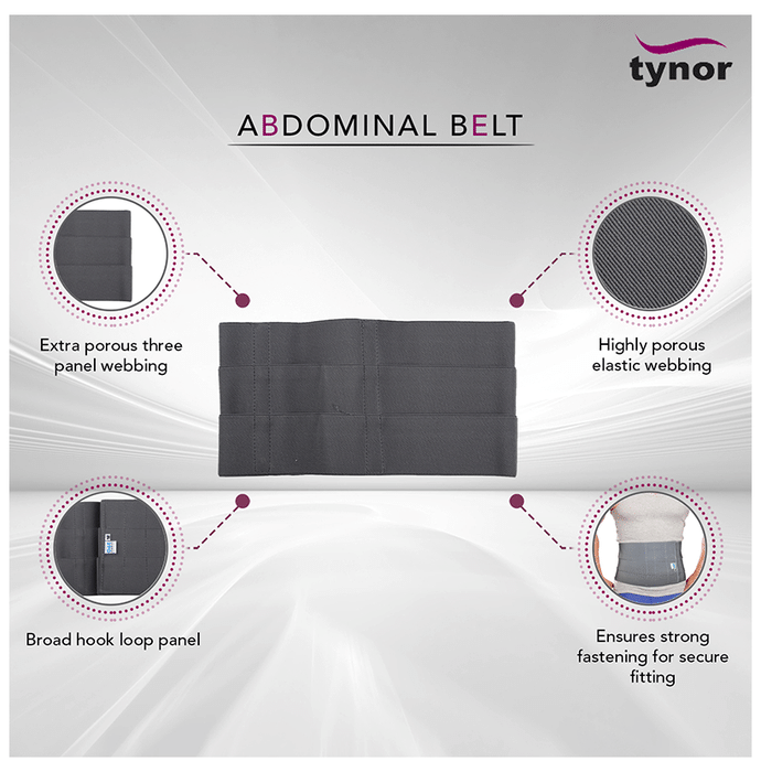 Tynor L-03 Abdominal Belt supports and compresses the abdominal muscles for waist line reduction and is used as a post operative or post delivery aid. | Uses: It is primarily used to provide support and compression to the abdominal muscles for waist line reduction. | Product Specifications and Features: Comes with extra porous three-panel webbing which improves ventilation and comfort of the patient Broad hook and loop tape panel offers better holding and size adjustability Gives optimal compression, tones up abdominal muscles following surgery, CS or delivery Facilitates optimal compression which binds surgical incisions of abdomen & chest, improves healing It has special nylon reeves which prevent rolling over of belt | Note: | Warranty: 6 Months | Warranty Service Type: Repair | What is covered in warranty: Manufacturing defect | Warranty Liability: Maximum to product cost | Customer Care Id: [email protected] | Customer Care Number: 18001212656 | Directions For Use: Use as per requirement or as directed by the physician. | Safety Information: Read the label carefully before use Store in a cool dry place away from direct sunlight Keep out of reach of the children Avoid physical damage