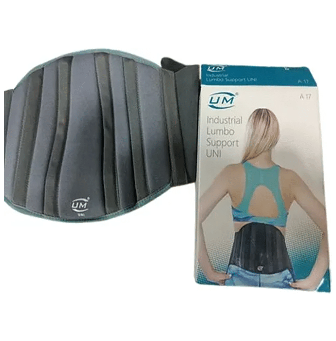 UM Universal Lumbar Support has bacterial functionality and is designed with unique weave elasticity, providing comfort and firm support for the lower back. | Uses It helps give firm support to the lower back and offers proper support | Product Specifications and Features: It is anatomically contoured; rigid splints provide effective immobilisation and maintain the correct posture Double pull mechanism enhances compression and splinting action Ethafoam back pad offers high cushioning in thin sections and improves comfort without compromising on immobilisation | Directions for Use: Wear it as directed by the label | Safety Information: Read the label carefully before use Keep out of reach of children