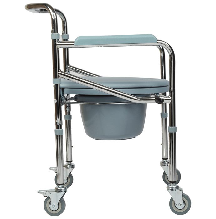 VMS Careline VWE 1032 Standard Foldable Commode Wheelchair with Long Bucket and Splash Guard VMS Careline VWE 1032 Standard Foldable Commode Wheelchair with Long Bucket and Splash Guard comes with a foldable design that helps to transport and store easily. It has a steel frame with height adjustment from 17.5 to 21.5 inches and a net weight of 9 kg. It is user-friendly and safe to use.