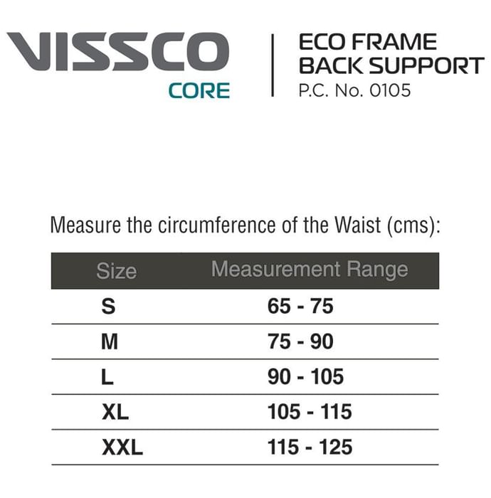 Vissco Core 0105 Eco Frame Back Support Medium Vissco Core 0105 Eco Frame Back Support provides rigid back support and helps to prevent movement and prevent injury to a weak/ injured back.